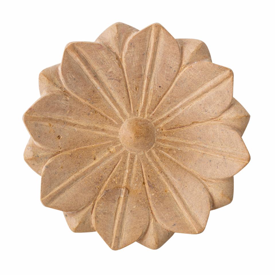Evi bolle i sandfarget marmor. Den unike formen, inspirert av blomsterblader, gjør den til et dekorativt blikkfang i seg selv – enten du plasserer den i vinduskarmen, på kommoden eller midt på spisebordet.