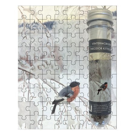 Koselig puslespill med Theodor Kittelsens stemningsfulle motiv Vintermorgen. Med 72 brikker er dette et overkommelig og morsomt puslespill som passer både barn og voksne. Leveres i praktisk rør, enkelt å ta med seg på hytta eller som en liten gave.