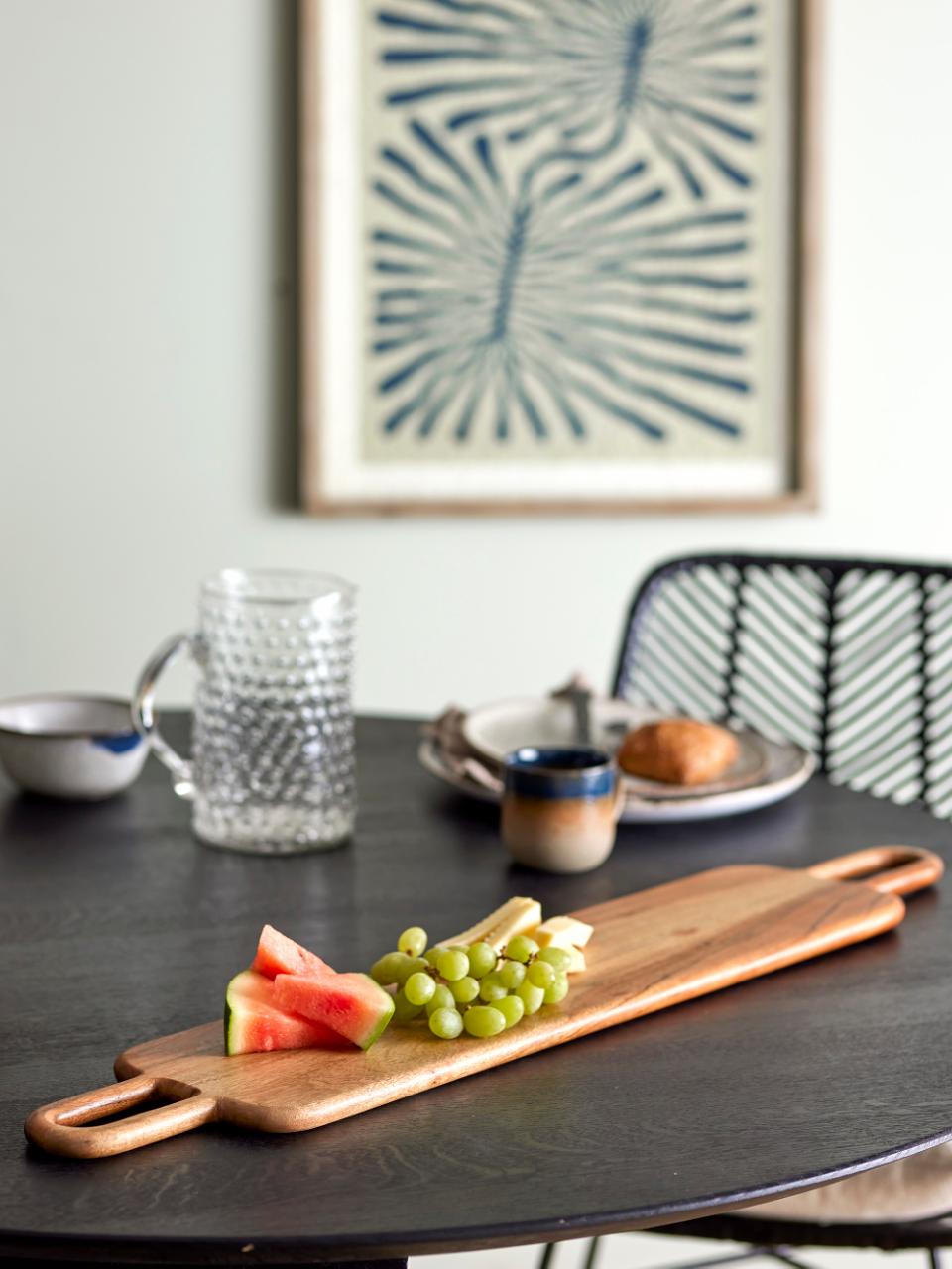 Riann serveringsbrett fra Bloomingville er langt, vakkert og elegant – laget i solid akasietre. Med en lengde på hele 81 cm har du god plass til å servere alt fra tapas til kaker og frukt. Den smale bredden på 15 cm gjør at brettet enkelt får plass mellom tallerkener på bordet. Hvert brett er unikt med naturlige farge- og åremønstre i treverket.